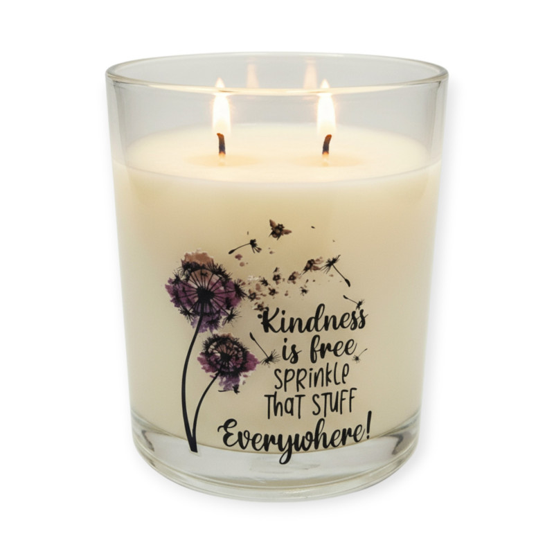 Un'eleganza discreta racchiusa in un vaso cilindrico dal design minimal e raffinato. Una candela che non solo illumina, ma ispira — con una scritta che invita, ogni giorno, alla gentilezza..