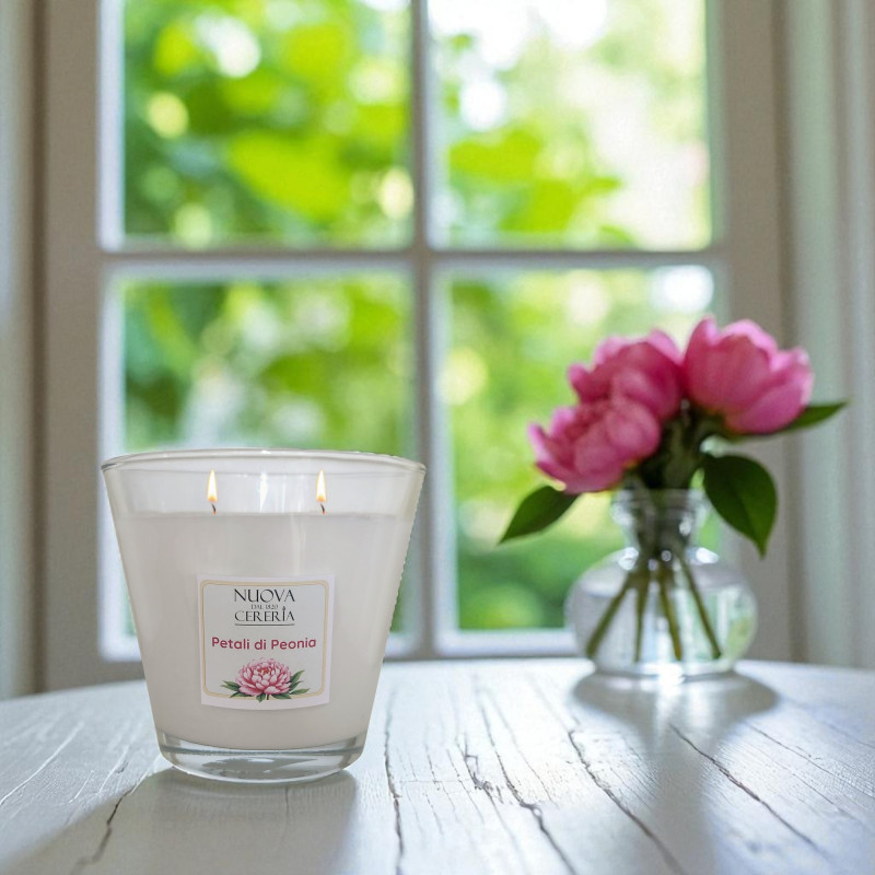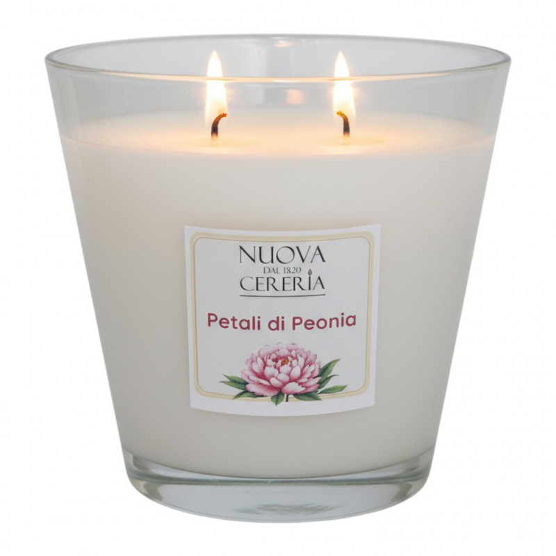 CANDELA IN VASO CONO GRANDE FRAGRANZA PETALI DI PEONIA