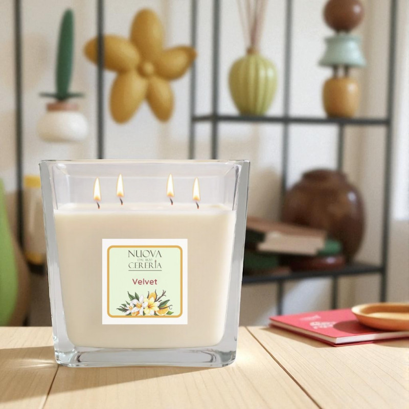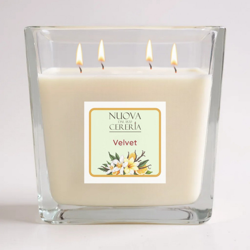 CANDELA IN VASO CUBICO GRANDE FRAGRANZA VELVET